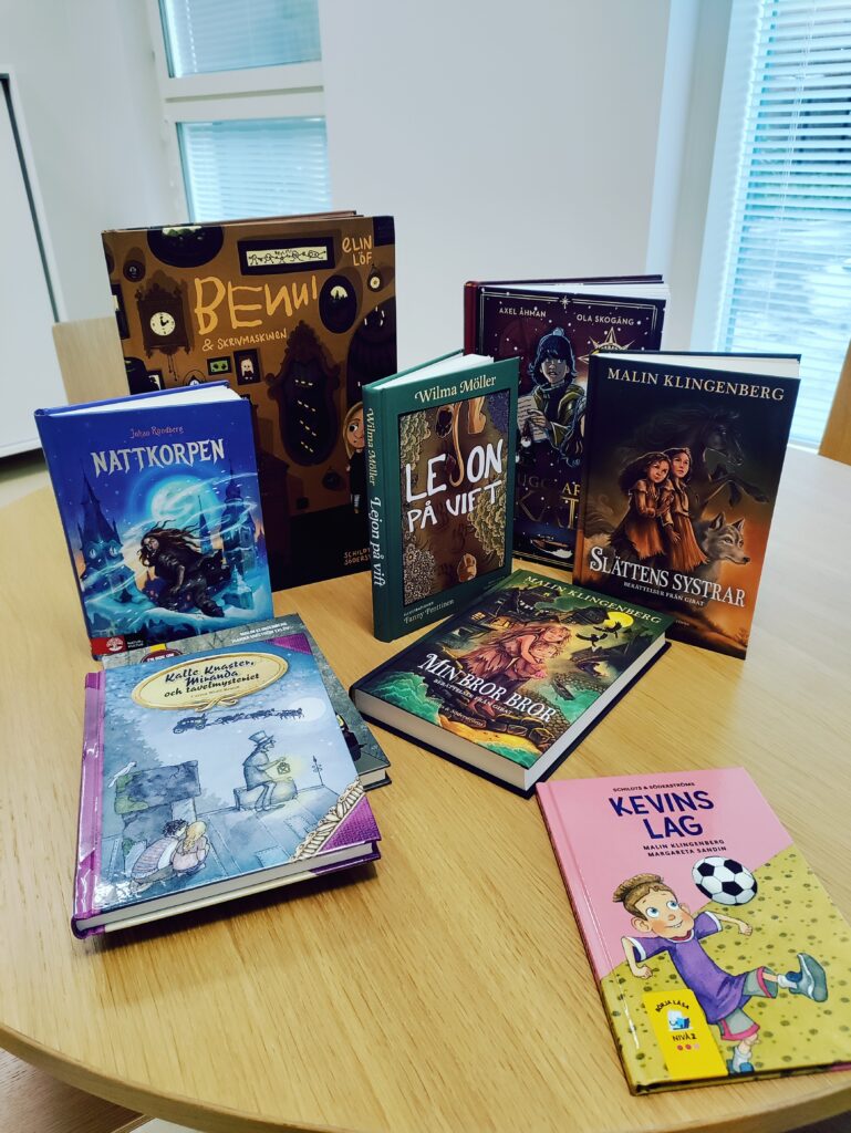En del av böckerna som Hem och Skola köpt till Sirkkala skola.